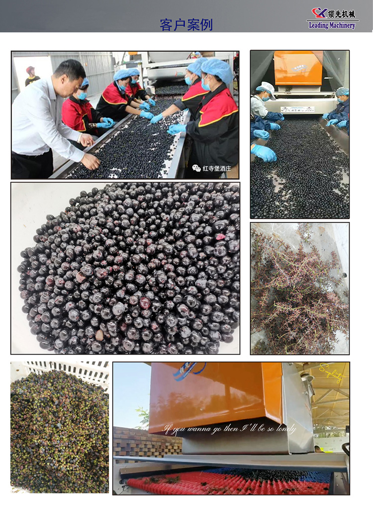 转筒式葡萄脱粒生产线的优点是产量大,速度快,适用的葡萄品种范围广泛。配合大小滚轮精选机可以自动分离出生青果粒及碎果梗。